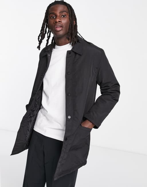 ASOS DESIGN padded trench coat with quilted lining in black