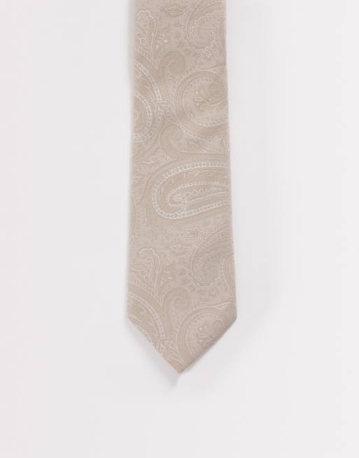 ASOS DESIGN paisley tie in beige