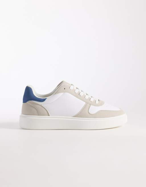 ASOS DESIGN panelled trainer in white and beige