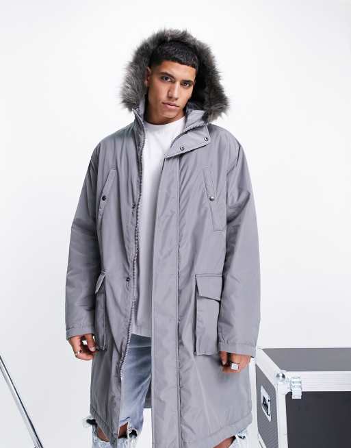 ASOS DESIGN parka jacket with faux fur trim hood in grey