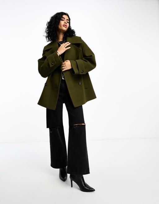 ASOS DESIGN pea coat in khaki