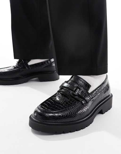 ASOS DESIGN penny loafers in faux black croc with snaffle