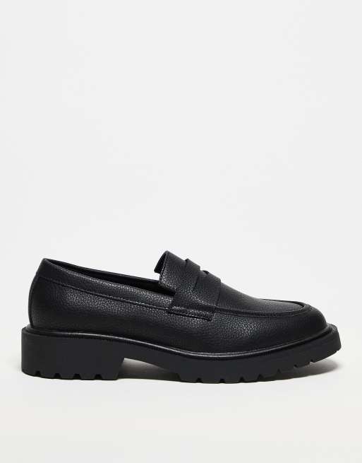 ASOS DESIGN penny loafers with cleated sole in tumbled black