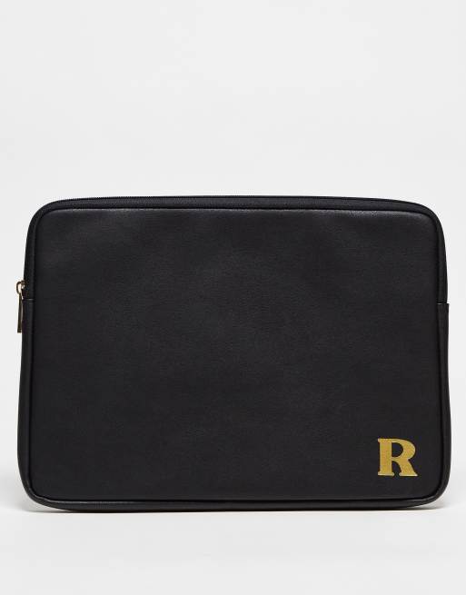 ASOS DESIGN personalised laptop case in initial R in black