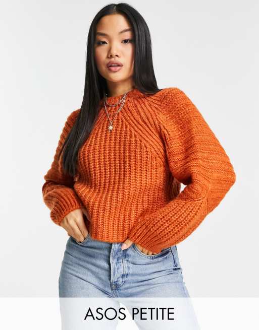 ASOS DESIGN Petite crop jumper in mixed rib stitch in orange