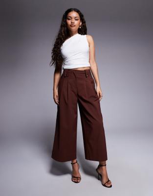 ASOS DESIGN Petite tailored cropped tab waist trousers in chocolate