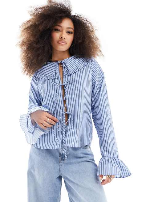 ASOS DESIGN pie crust collar blouse in blue stripe