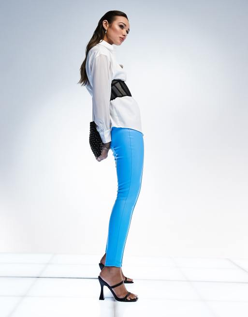 ASOS DESIGN pintuck trousers in faux leather in blue