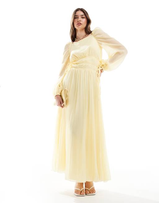 ASOS DESIGN pleated drawstring bodice maxi dress in pastel yellow