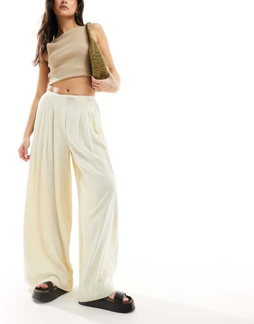 ASOS DESIGN pleated palazzo wide leg trouser with linen in cream