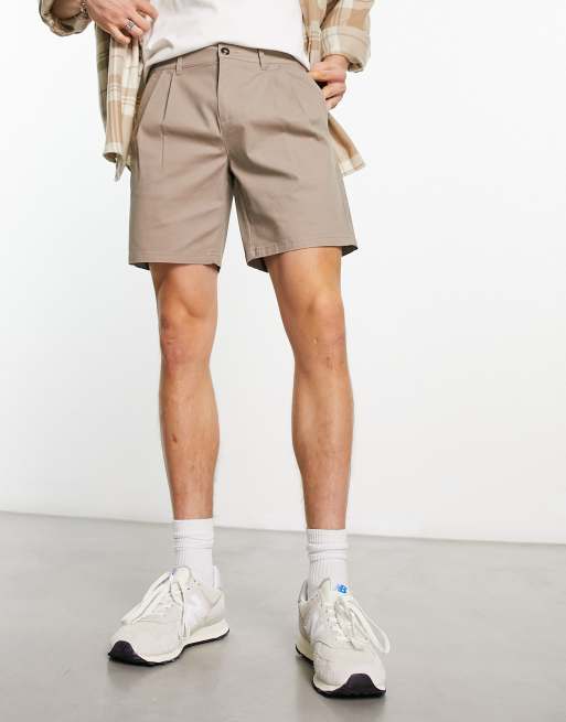 ASOS DESIGN pleated shorts in mid length in light grey