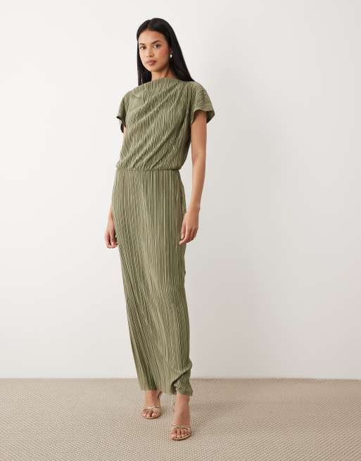 ASOS DESIGN plisse draped waist midi dress in khaki