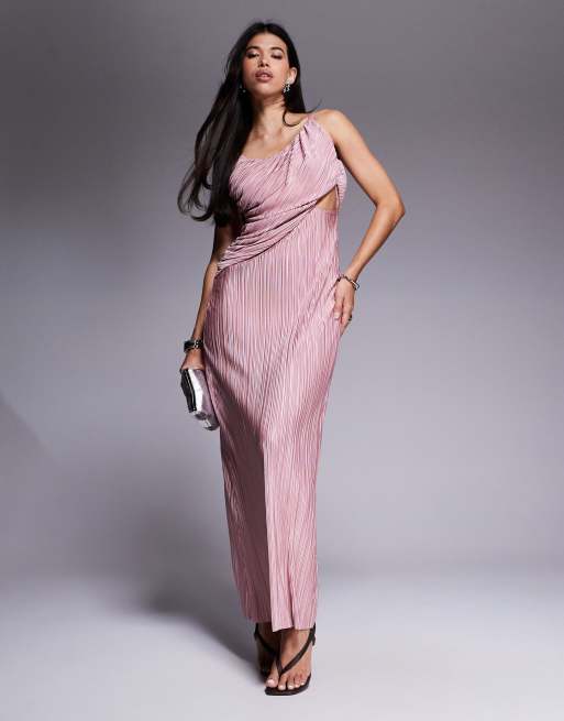 ASOS DESIGN plunge drape plisse maxi dress in blush