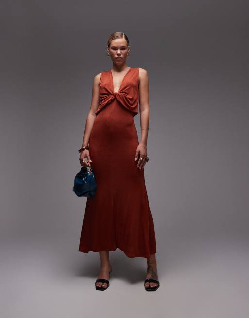 ASOS DESIGN plunge draped twist front maxi dress in rust