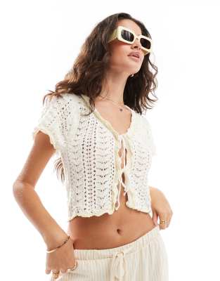 ASOS DESIGN pointelle cardi with tie front in soft yellow