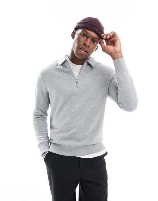 ASOS DESIGN polo sweatshirt with zip in grey marl