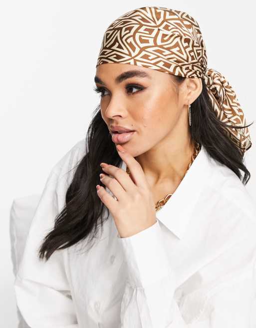 ASOS DESIGN polysatin medium headscarf in monogram print - BROWN