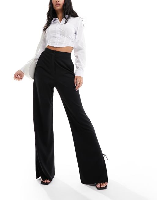 ASOS DESIGN ponte wide leg trouser with vent split in black
