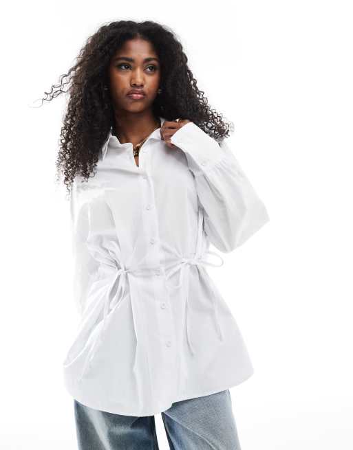 ASOS DESIGN poplin drawstring waistband shirt in white