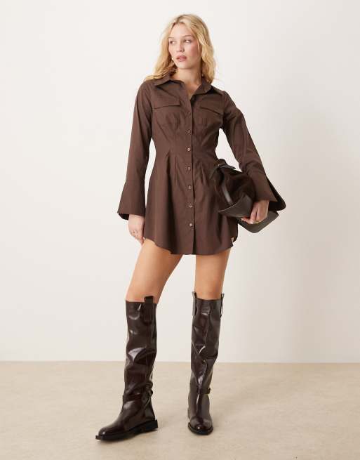 ASOS DESIGN poplin long sleeve mini shirt dress in bitter chocolate