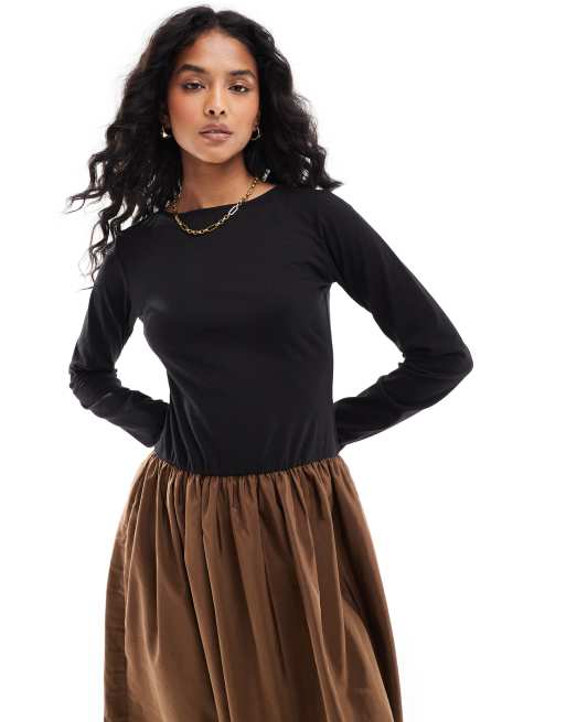 ASOS DESIGN poplin mix full skirt maxi dress in chocolate