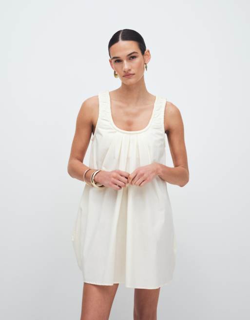 ASOS DESIGN poplin scoop ruched neck mini sundress in ecru