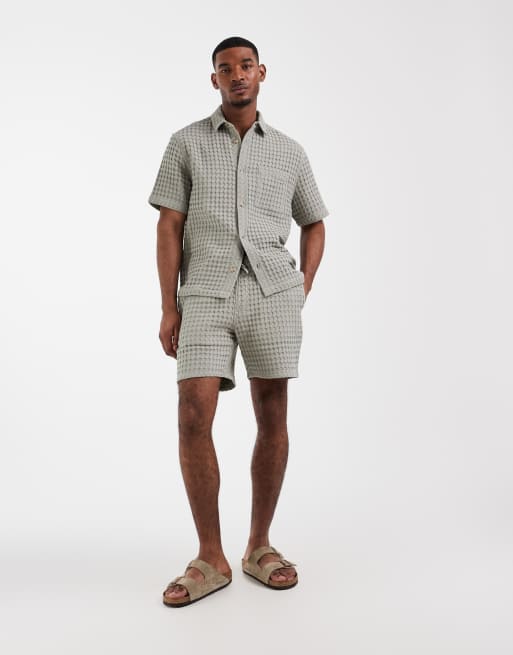 ASOS DESIGN premium co-ord textured shorts in mid length in green