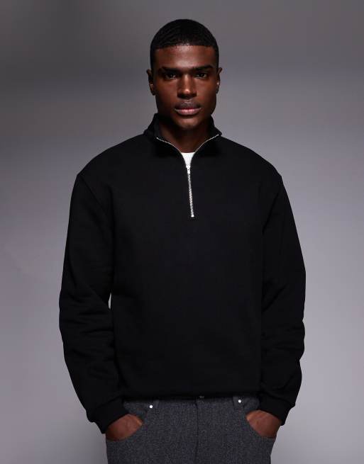 ASOS DESIGN premium half zip sweatshirt in 400gsm in black - BLACK