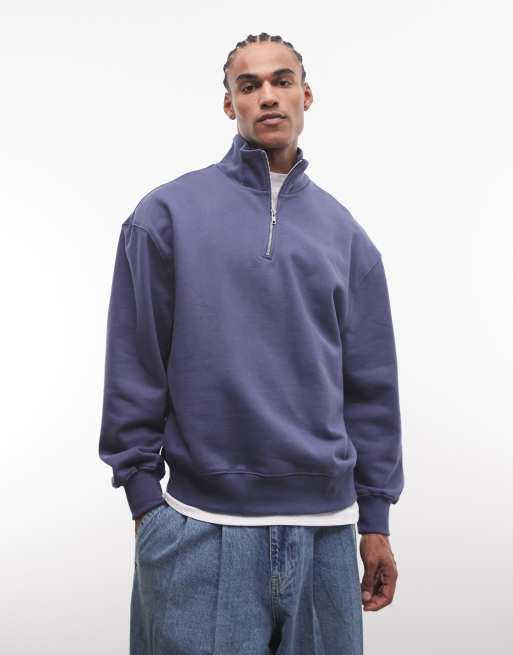 ASOS DESIGN premium heavyweight oversized quarter zip 400gsm in dark blue - MBLUE