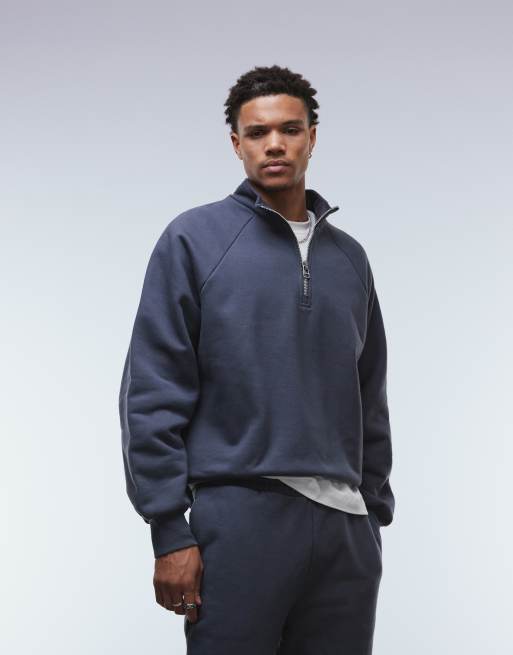ASOS DESIGN premium heavyweight oversized quarter zip sweatshirt in 650gsm navy