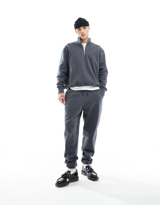 ASOS DESIGN premium heavyweight oversized quarter zip sweatshirt in washed black - CHARCOAL