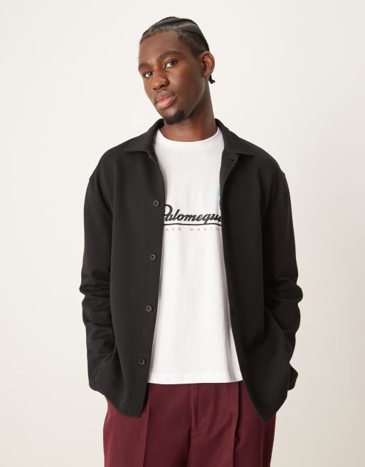 ASOS DESIGN premium interlock relaxed long sleeve buttonup shirt in black