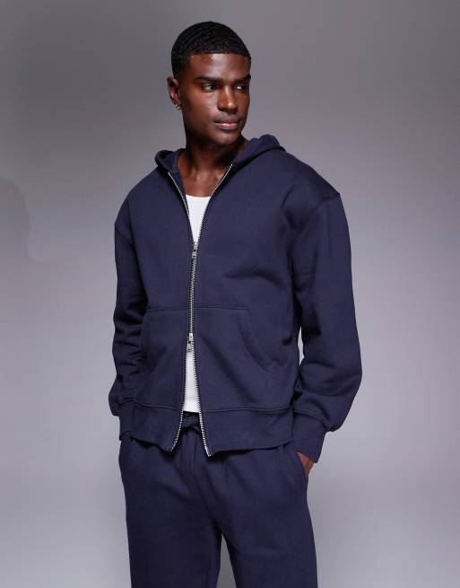 ASOS DESIGN premium oversized zip through hoodie in 400gsm in navy - NAVY