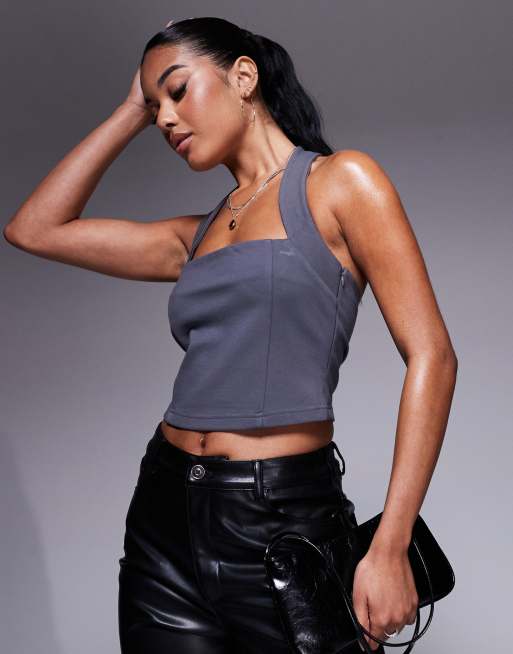 ASOS DESIGN Premium ponte halter neck top in charcoal