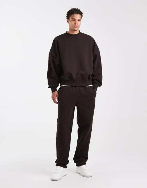 ASOS DESIGN premium straight leg jogger in 400gsm brown - BROWN
