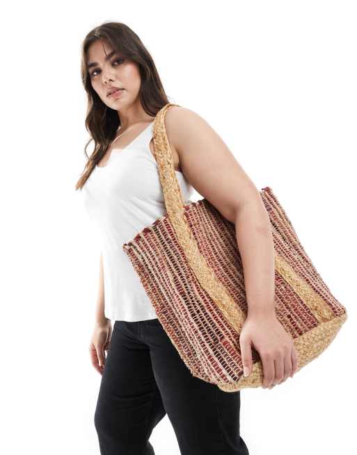 ASOS DESIGN premium striped straw jute tote bag in multi