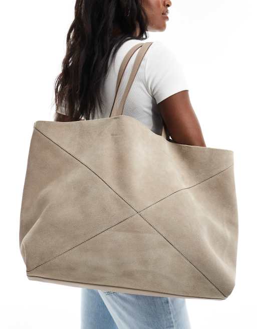 ASOS DESIGN premium suede panelled tote in stone