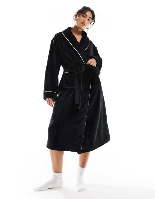 ASOS DESIGN premium super soft fleece midi robe in black