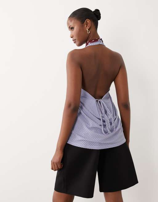 ASOS DESIGN printed mesh open front top with tie in contrast polka dot
