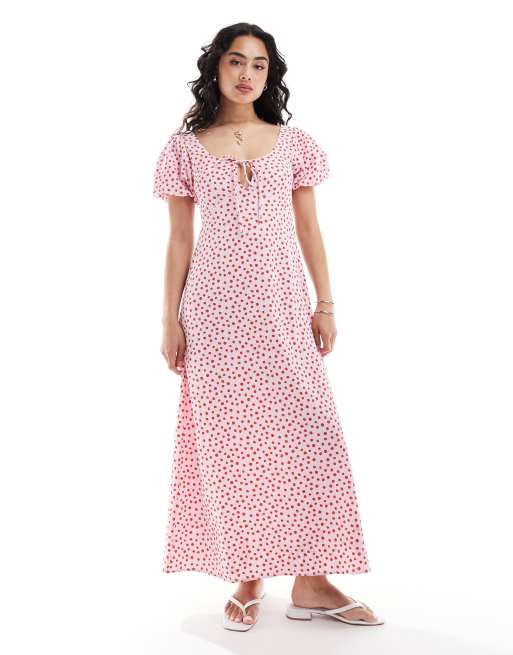 ASOS DESIGN puff sleeve midi tea dress in spot
