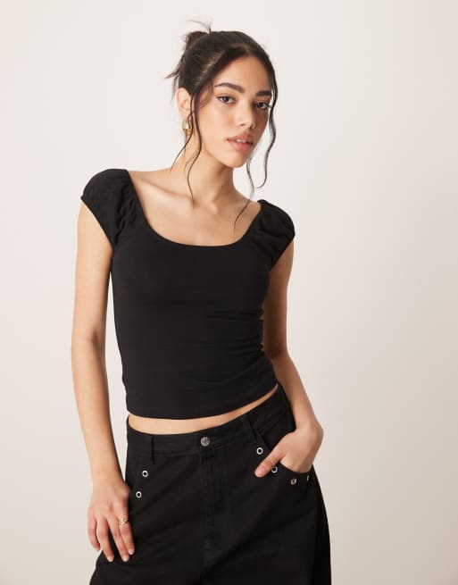 ASOS DESIGN puff sleeve sun top in black