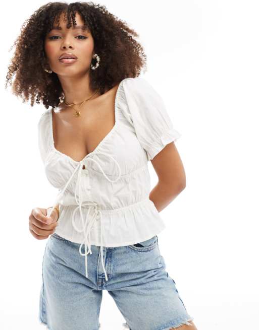 ASOS DESIGN puff sleeve top in white