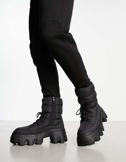 ASOS DESIGN puffer boot with chunky sole in black nylon