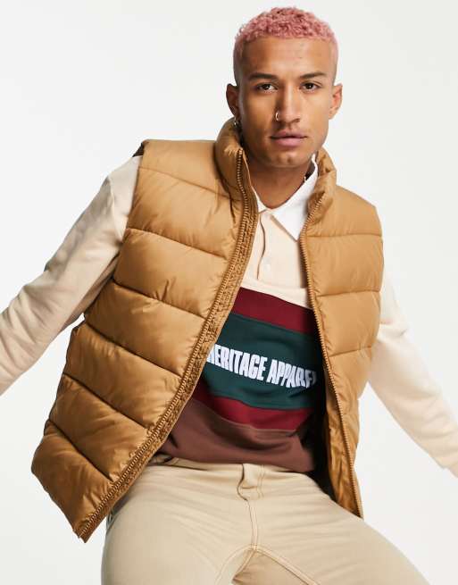 ASOS DESIGN puffer gilet in camel