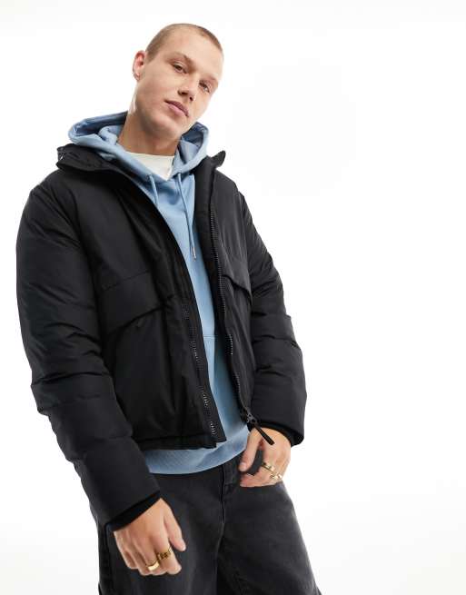 ASOS DESIGN puffer jacket with hood in black