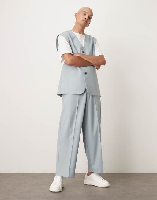 ASOS DESIGN pull on balloon suit trousers in light blue