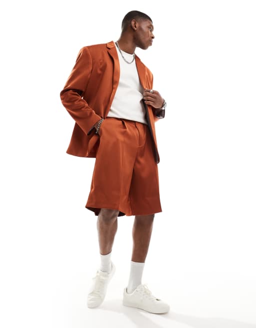ASOS DESIGN pull on bermuda suit shorts in tobacco