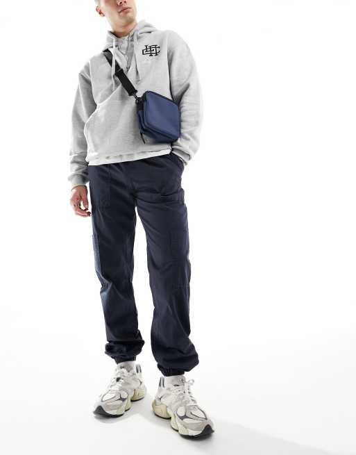 ASOS DESIGN pull on cargo jogger in washed navy with elasticated waist