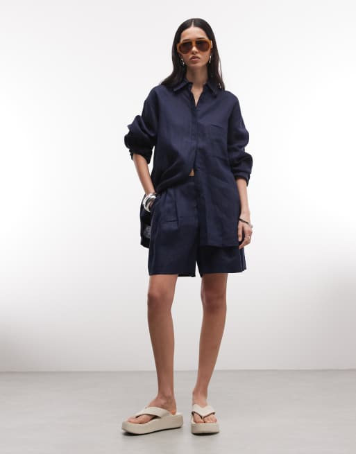 ASOS DESIGN pull on linen shorts in navy