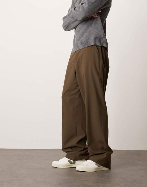 ASOS DESIGN pull on smart wide leg trousers in dark brown